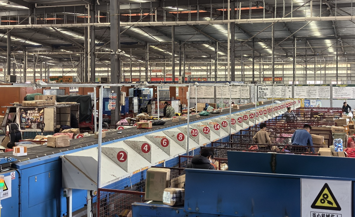 在富川快递物流集散中心,智能分拣线日夜流转,旺季日处理快递近5万件。作为富川物流配送的“调度中枢”,这里推行“统仓共配”模式,整合主流快递品牌,打通农产品上行和工业品下行的“最后一公里”。