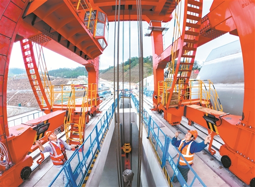 3月12日,在平陆运河马道枢纽建设现场,工人们加紧安装各种机电设备。记者周军/摄