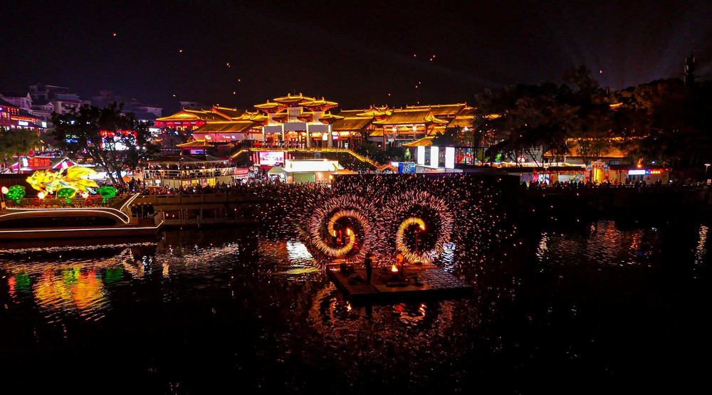 夜幕降临,容州古城灯火璀璨,实景演出、汉服游园、鱼灯巡游、趣味十足的NPC互动随处可见……游客仿佛穿越千年,沉浸式体验盛唐市井生活与繁华夜景,真切感受古典文化的魅力。