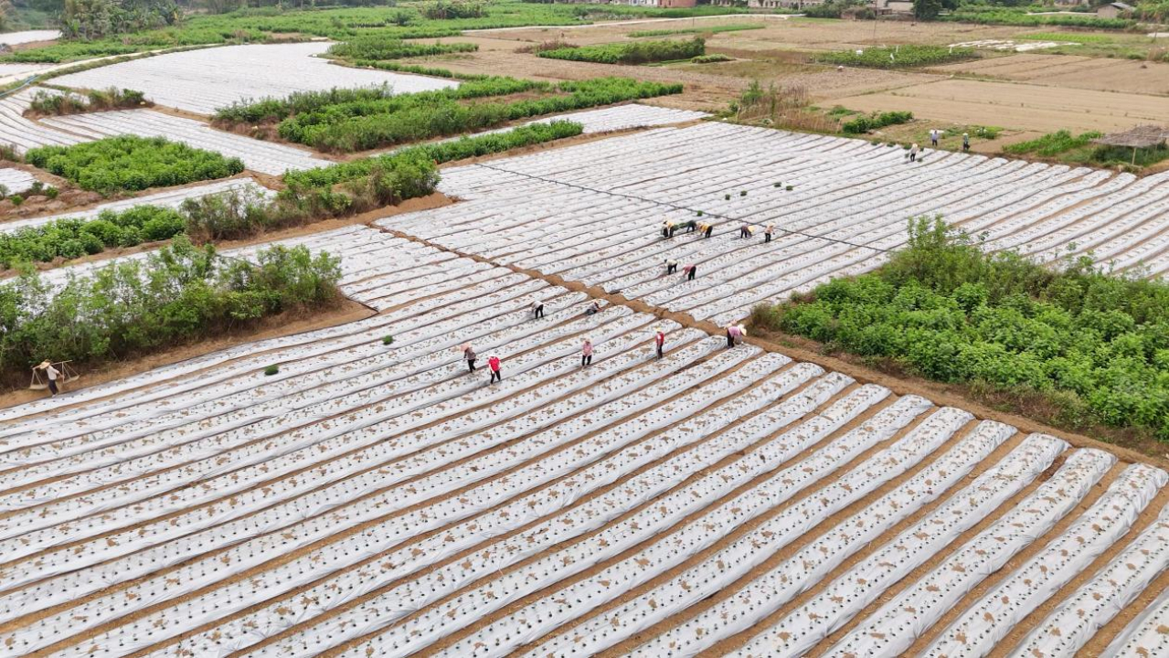 春风送暖,万物复苏。近日,在广西玉林市容县十里镇300亩高辣度辣椒种植基地内,农户们正抢抓农时,将一株株嫩绿的辣椒苗移栽到覆盖着薄膜的菜畦中,为今年的丰收播下希望的种子。