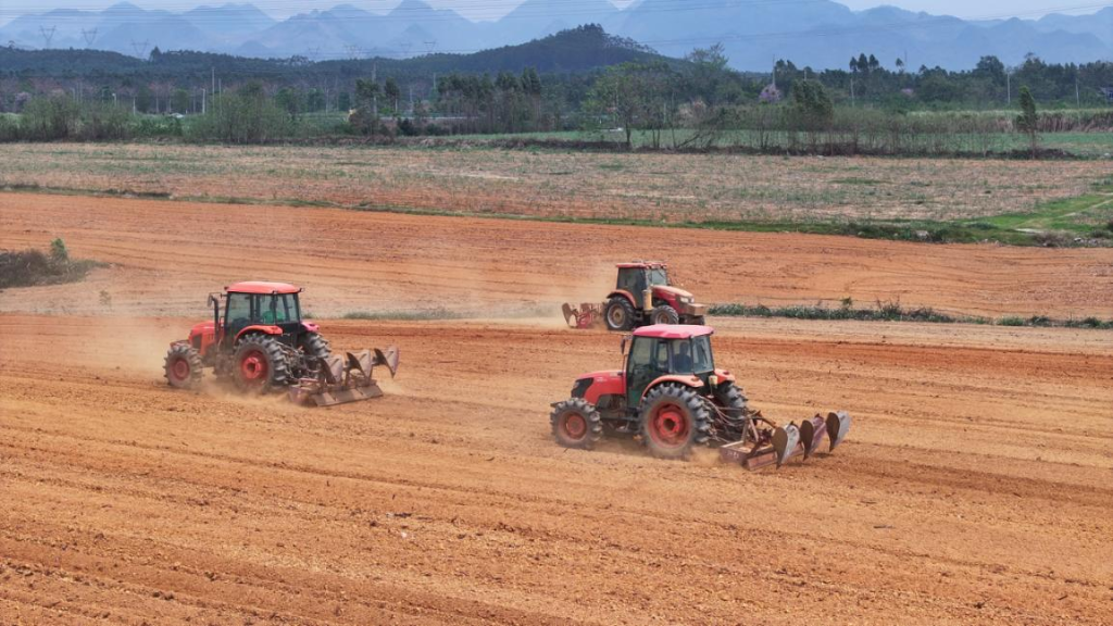 “基地现在耕种管收全程机械化,我们采用的北斗导航系统让农机开沟笔直、行距精准,为后续中耕管理和机械化收获打下基础。”来宾市金信农业有限公司负责人李金蔚介绍。基地还应用了水肥一体化技术,精准地将水肥输送到甘蔗根部,亩产达7至8吨,较传统种植增产约1.5吨。