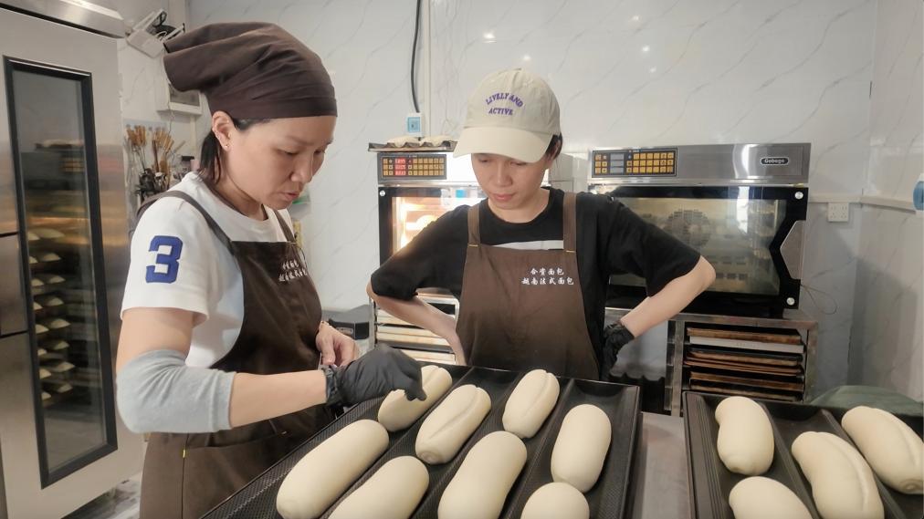 如今,武碧玉从容地打理小店、招呼往来食客,早已适应了南宁的生活节奏。中午时分,她正在发酵面团,两名食客骑着电瓶车赶来。前两天面包早早售罄,这已是他们第三次登门。她认出熟面孔,笑着承诺:“今天一定得!”