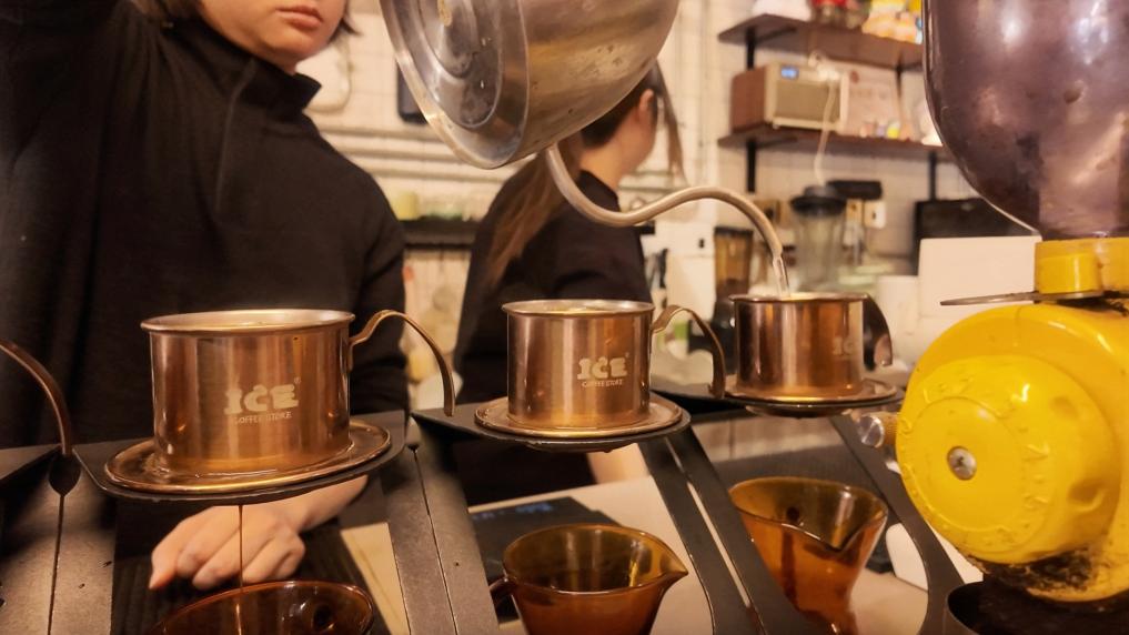 “我从小就喝咖啡,这早就成为我的生活习惯了。”黄登宇一边往滴漏壶里加咖啡粉,一边说。在南宁,这位越南华侨的后代经营着一家地道的越南咖啡店。