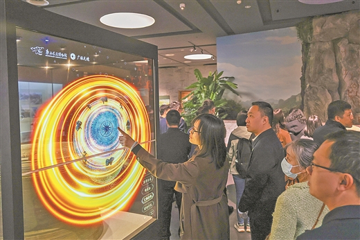 广西民族博物馆元宇宙全息文物柜让观众与千年铜鼓“隔空对话”。(广西民族博物馆供图)
