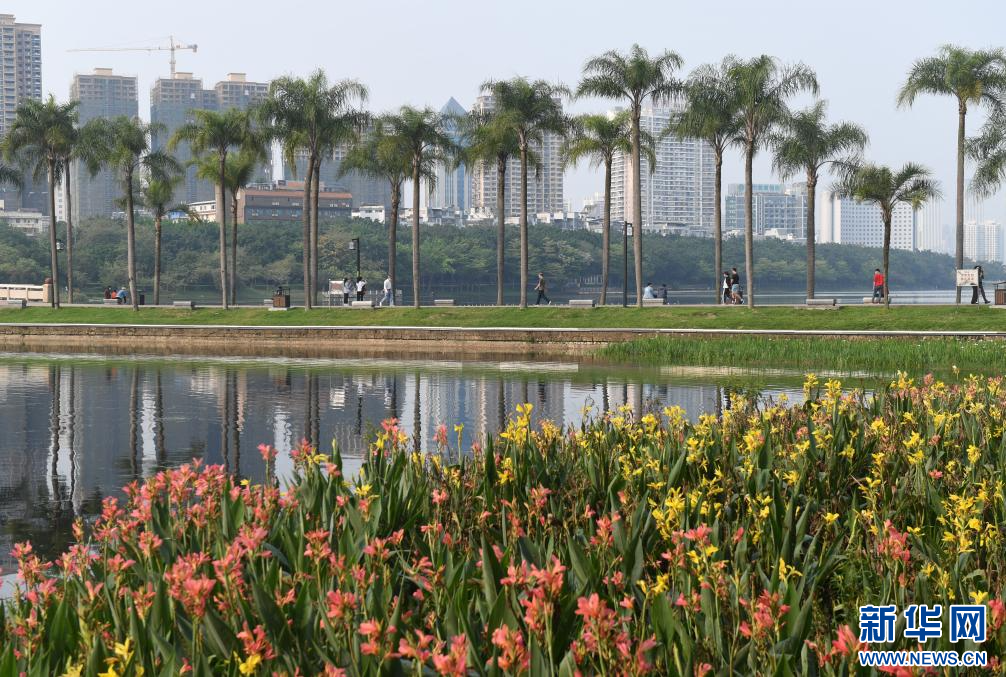 这是南宁市南湖边盛开的鲜花(2019年12月17日摄)。