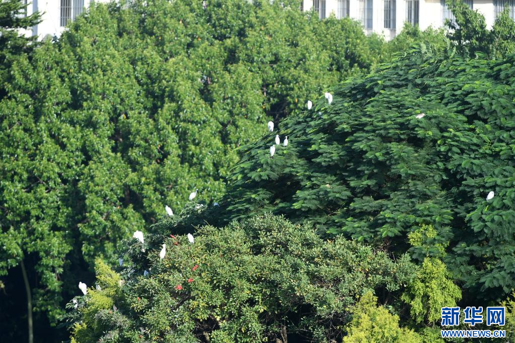 鸟儿在南宁市南湖畔的树上休憩(2021年10月12日摄)。