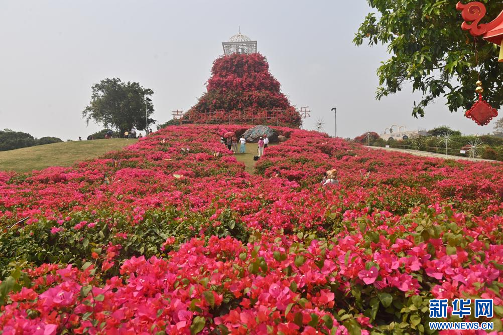 人们在南宁市青秀山欣赏盛开的鲜花(2026年4月12日摄)。