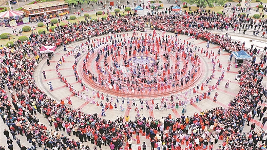 2025年3月29日,融安县举行“同唱一首山歌,共跳一支舞蹈”广西三月三民俗文化活动,当地各族群众用悠扬的山歌、欢快的民族舞共庆传统佳节,展现民族团结的动人画卷。覃庆和/摄