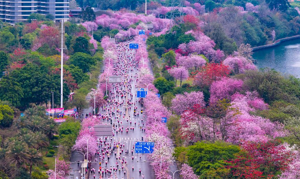 新华社北京4月15日电 “这简直是中国最美赛道‘天花板’!”春日,一座“紫荆花城”,因为一场马拉松赛事,火爆出圈。30万株洋紫荆次第盛放,2026年柳州马拉松,开启了一场花海里的奔跑。