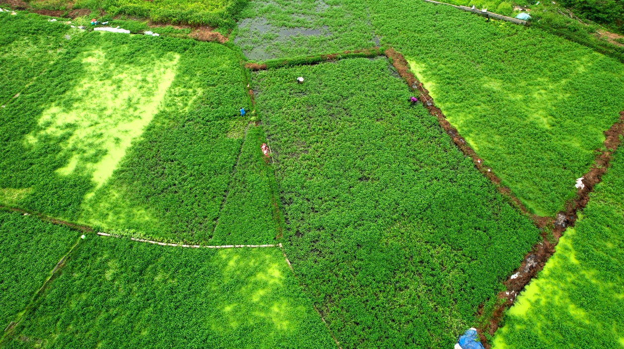 图为博白县博白镇官田村百亩蕹菜基地。