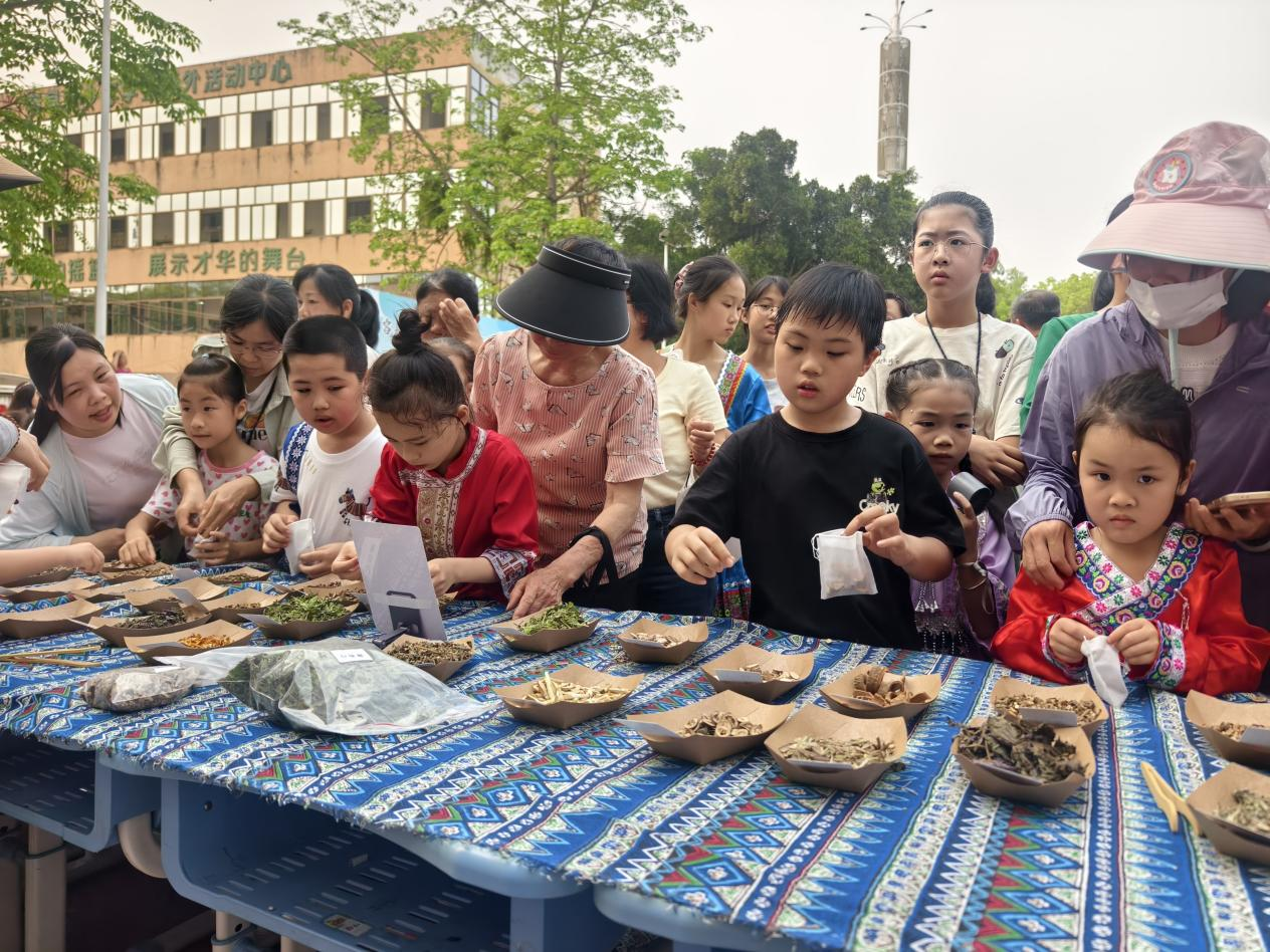 在美食体验区,青团、五色糯米饭香气扑鼻,工作人员现场讲解植物染色原理,让孩子们在品尝美味的同时,了解传统美食背后的文化知识;香囊制作区里,孩子们在指导下制作香囊,体验传统手工技艺的乐趣;民俗游戏区人气高涨,在竹竿舞、背篓抛绣球、板鞋竞赛等项目上,亲子协作、同伴互助,欢声笑语不断。