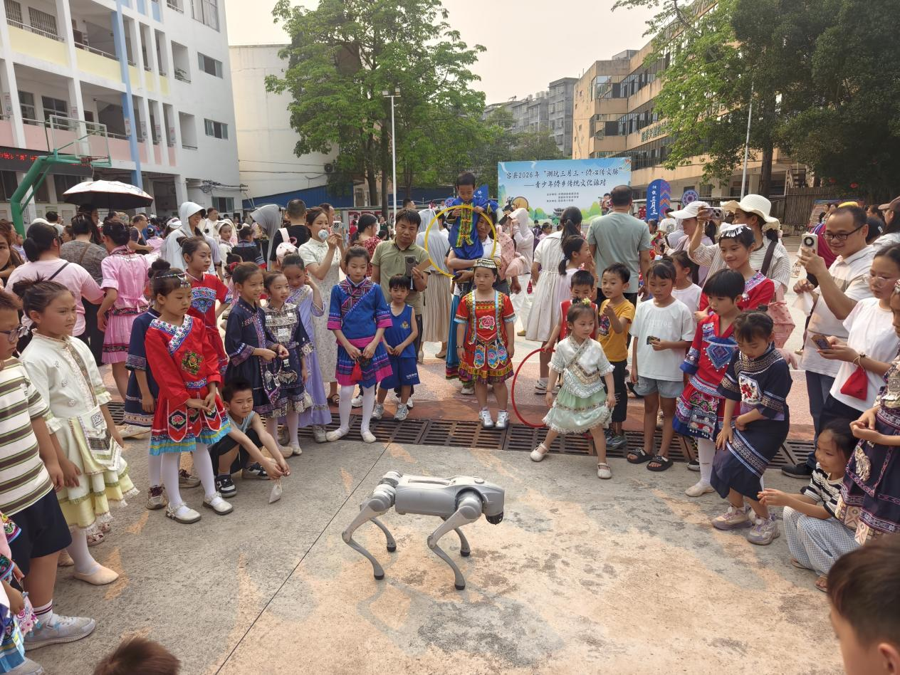 舞台区表演精彩纷呈,穿插民族舞蹈、机器狗表演、侨乡故事朗诵等节目,同时开展“广西三月三”知识趣味问答,以有奖互动形式普及民族与节日知识,将活动氛围推向高潮。