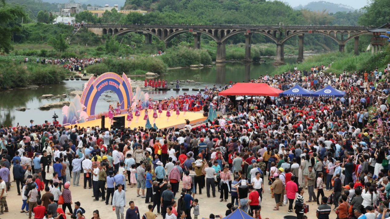 4月17日,广西容县杨梅镇梅江河畔歌声飞扬、热闹非凡,“情聚侨乡美 潮涌梅江情”民俗艺术文化活动在此精彩上演,吸引了众多群众和游客前来感受侨乡容县的独特魅力。