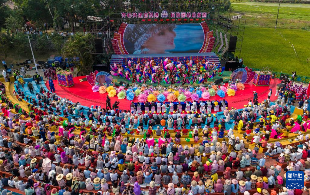 4月19日在海南省琼海市会山镇拍摄的“三月三”活动现场(无人机照片)。