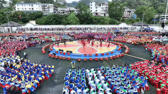 欢歌笑语,鼓乐齐鸣。4月18日,广西巴马城东体育广场热闹非凡,上万名各族群众和游客身着节日盛装欢聚一堂。