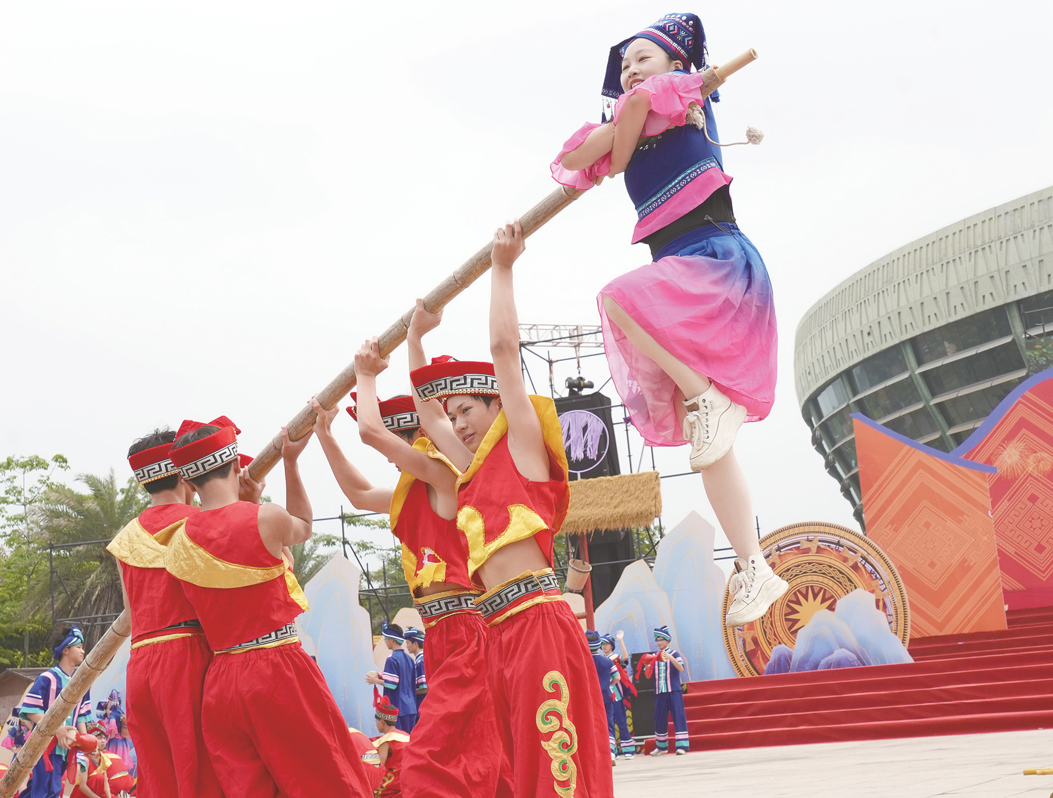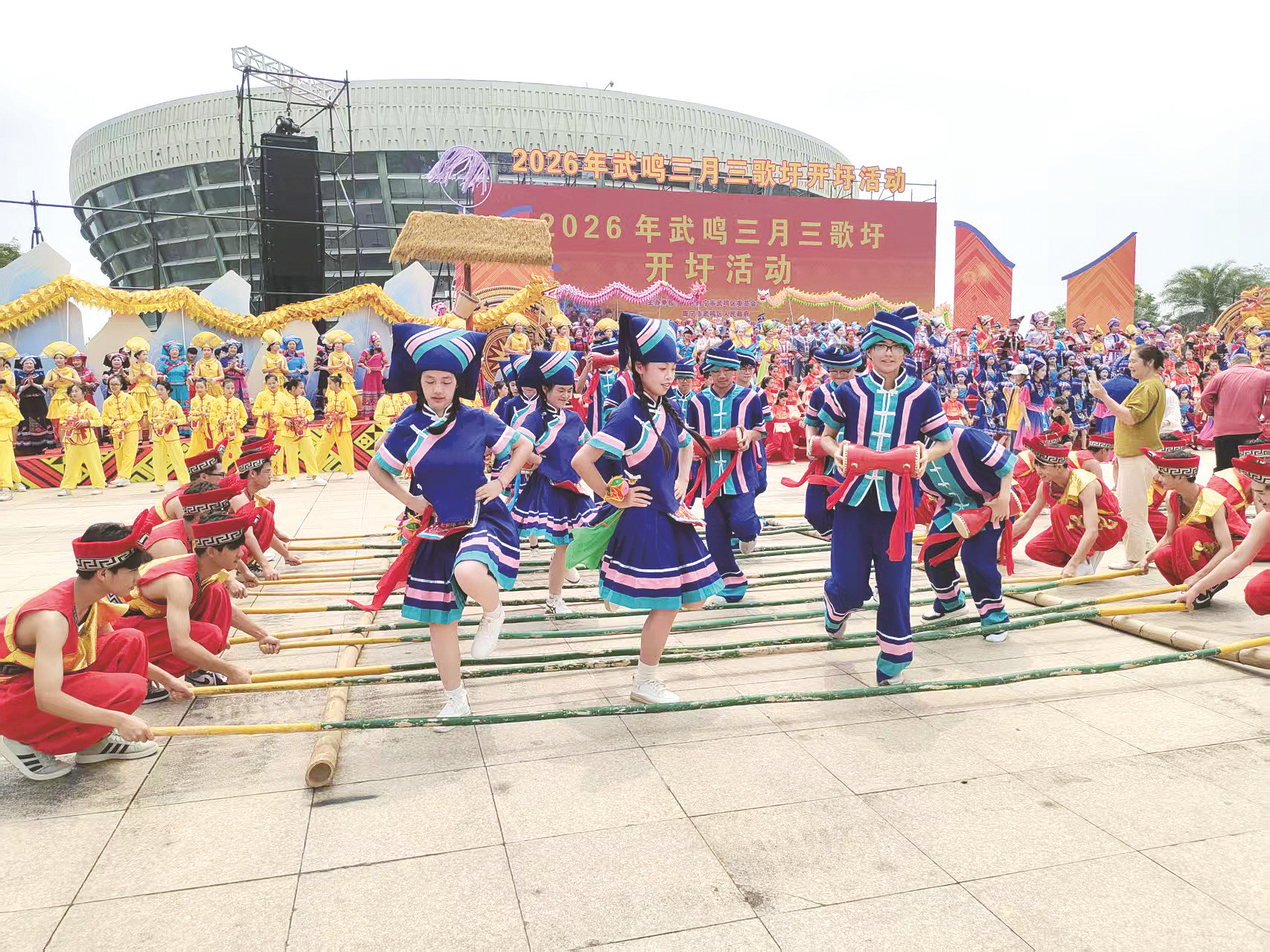 2026年武鸣“三月三”歌圩开圩活动上,演员带来《花样竹竿》。 (梁挺 摄)