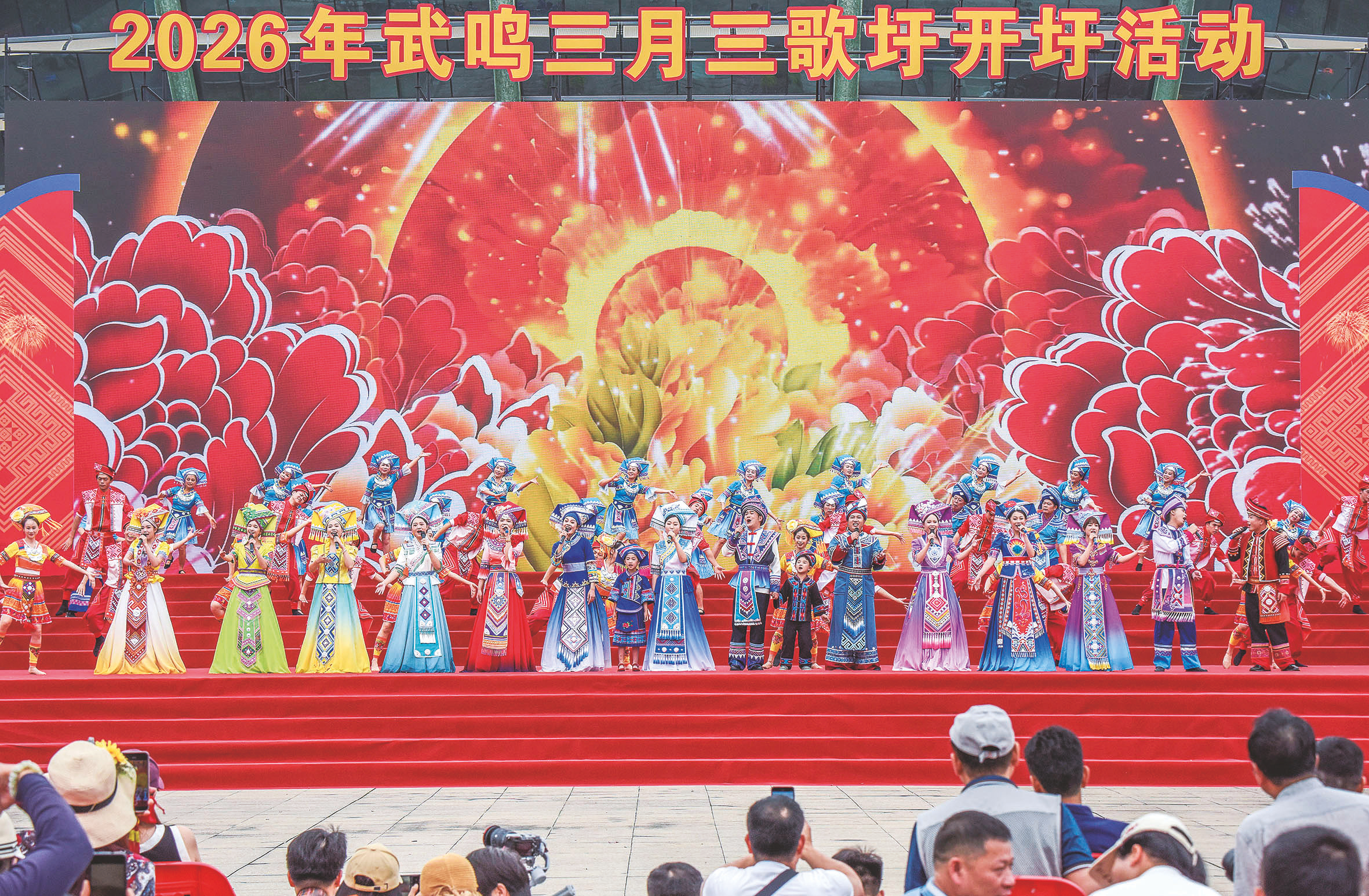 2026年武鸣“三月三”歌圩开圩活动上精彩的文艺表演。 (彭寰 摄)