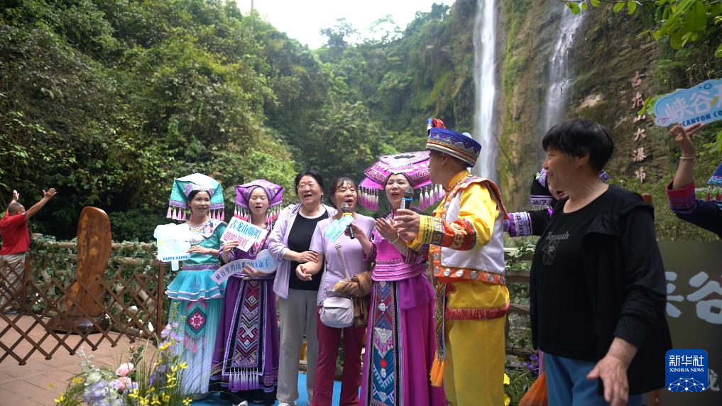 “三月三”期间,百色靖西市的古龙山大峡谷迎来一波又一波的游客。在峰林叠翠、飞瀑流泉的如画山水间,景区特别增设山歌互动环节。内蒙古游客张晓敏现学现唱了一曲《大地飞歌》,感慨地说:“眼前的山水有了‘记忆点’,它们是带着民族风情的山水。”