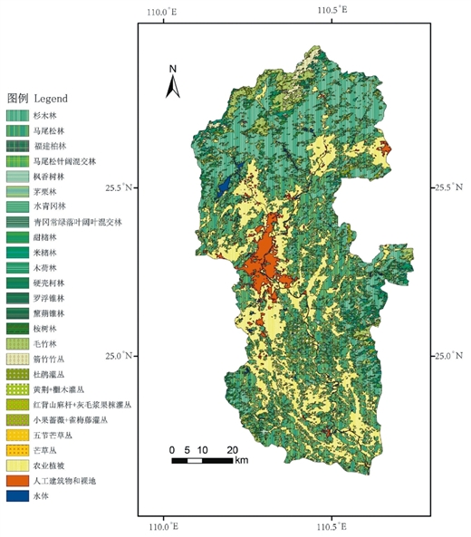 国内首张漓江流域1∶50万植被群系分布图。(向悟生供图)