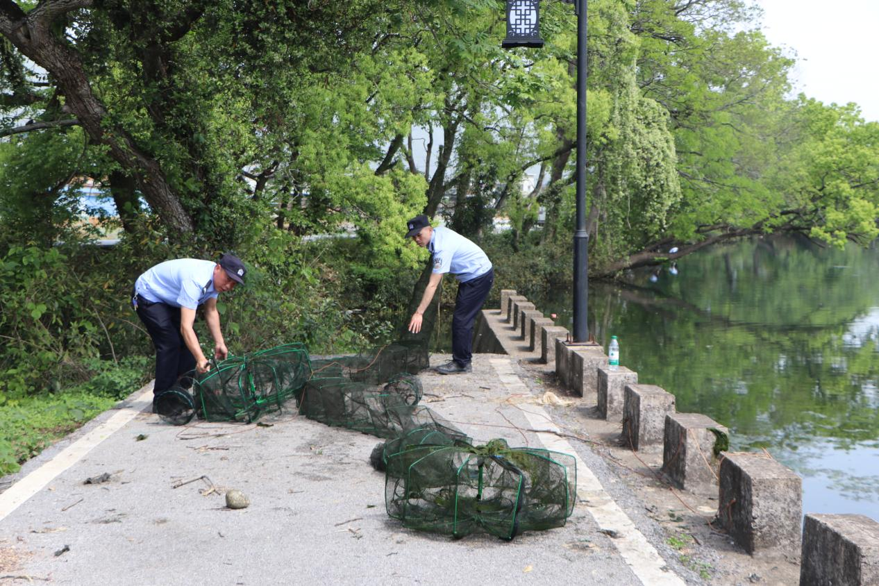 兴安县公安局生态环境保护大队对辖区内各水域开展常态化全面清查行动,重点清理河道、沟渠内非法放置的地笼。蒋淞宇 摄