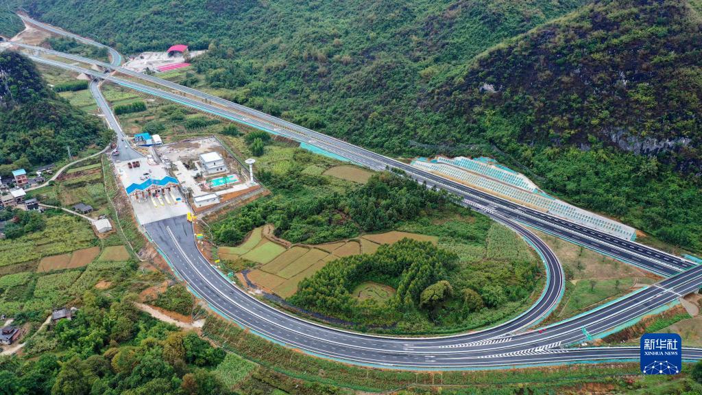 这是广西桂林至柳城高速公路融安县大良互通(11月17日摄,无人机照片)。