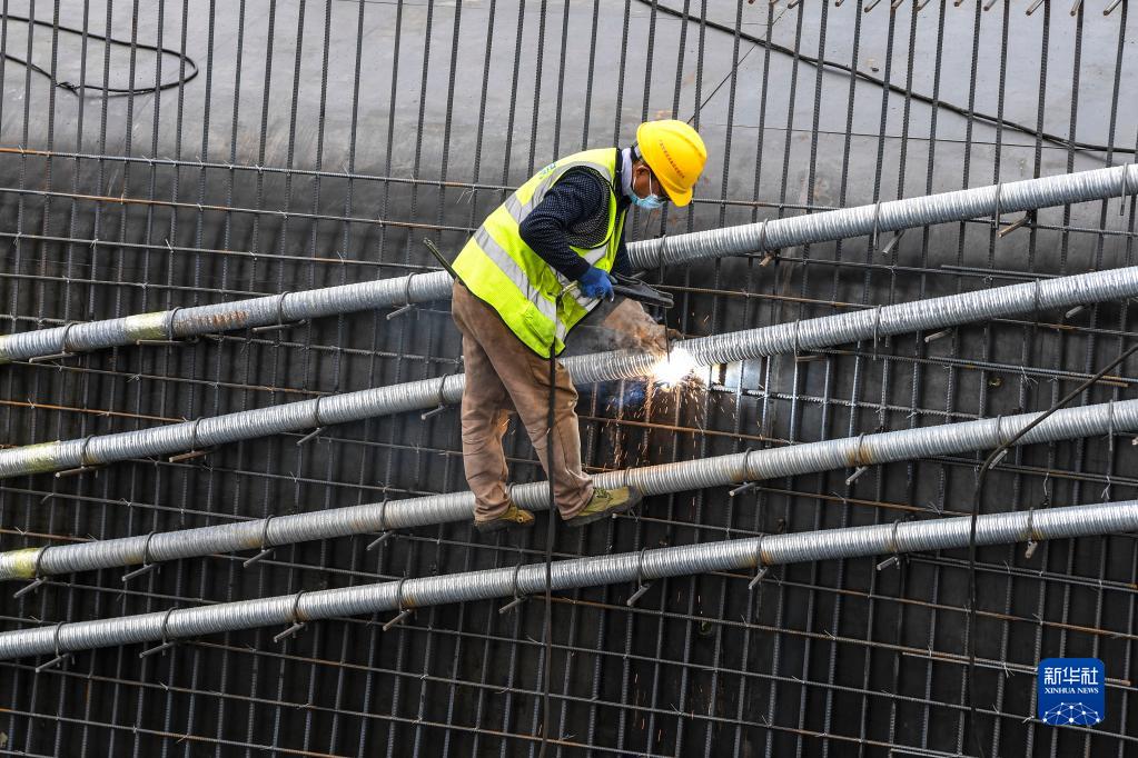 11月18日,在南玉高铁站前工程7标段,工人在进行焊接作业。