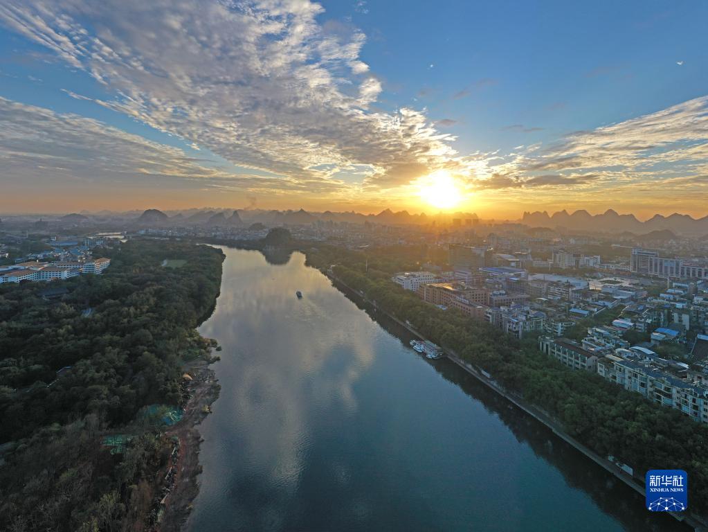 初冬时节,广西桂林市城区水碧山青、草木葱茏、景色秀丽(11月24日摄,无人机照片)。