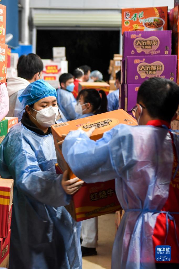 2月11日,工作人员在德保县一处仓库搬运物资。