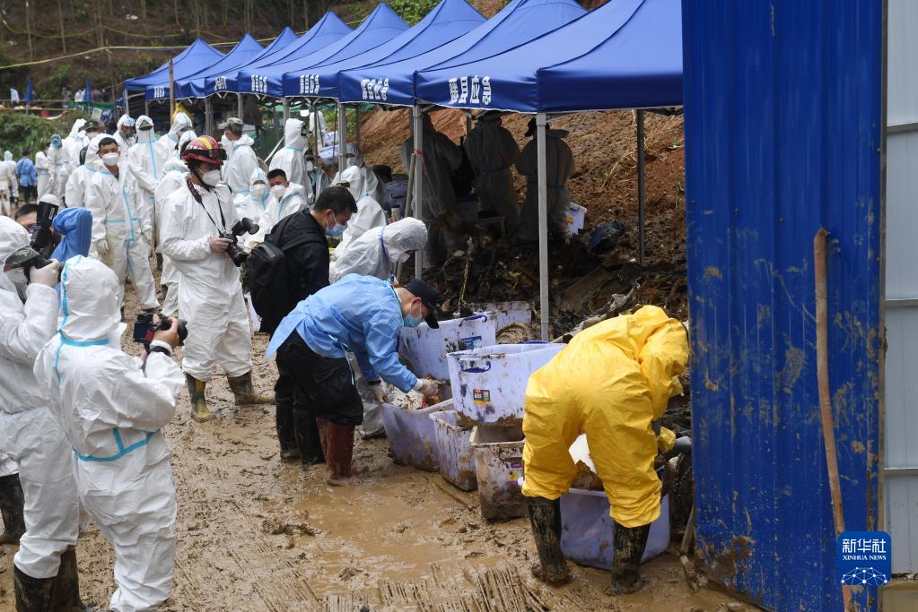3月25日,工作人员将搜寻到的物品进行归类辨别。新华社记者 陆波岸 摄