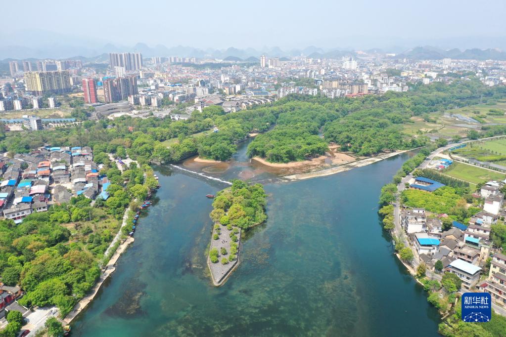 这是4月9日拍摄的广西兴安县灵渠(无人机照片)。