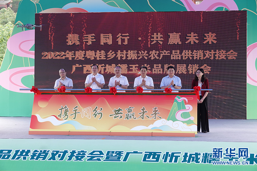 “携手同行·共赢未来”2022年度粤桂乡村振兴农产品供销对接会暨广西忻城糯玉米品牌展销会正式启动。新华网 刘君 摄