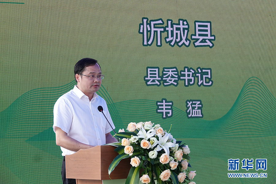 忻城县委书记韦猛发言。新华网 刘君 摄
