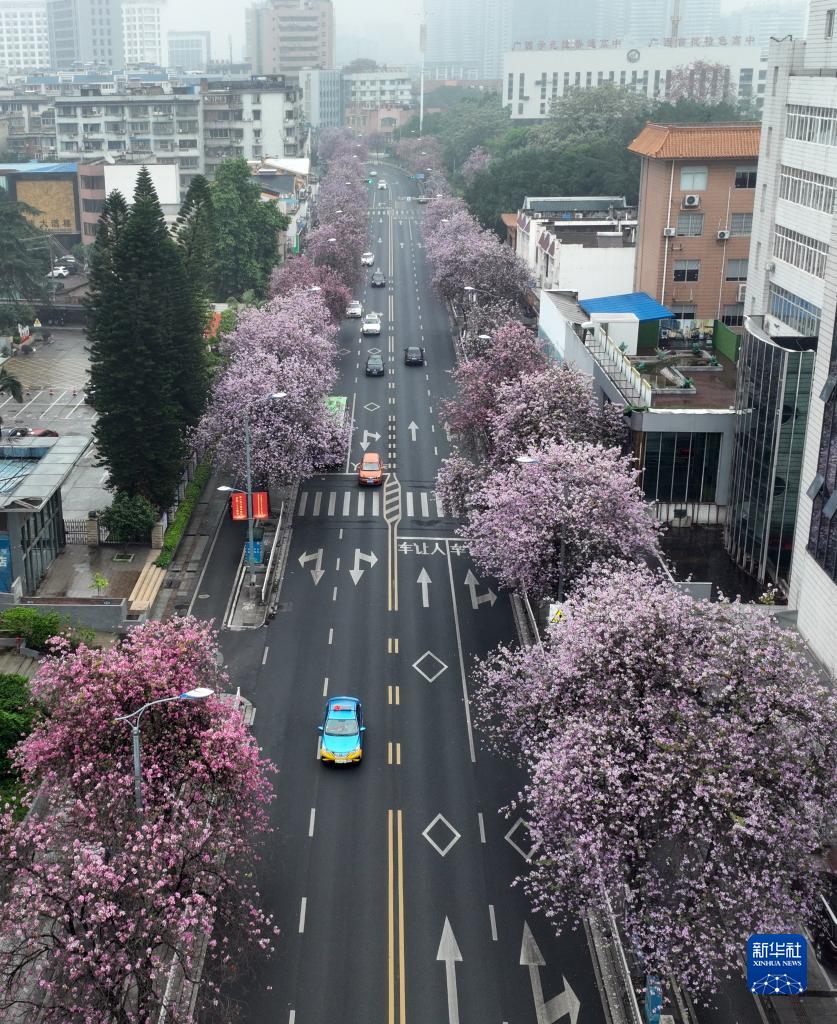近日,广西柳州市洋紫荆进入盛花期,市区变成一片花的海洋。洋紫荆是柳州市市花,市区共种植洋紫荆近30万株。
