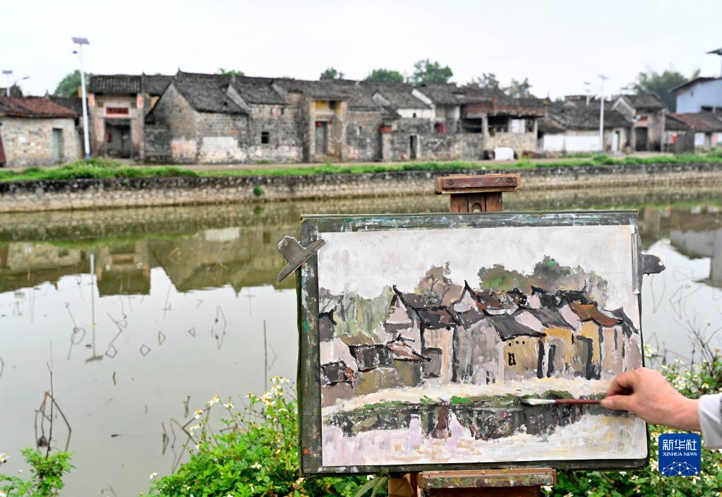4月10日,绘画爱好者在柳城县古砦仫佬族乡大户村滩头屯写生。