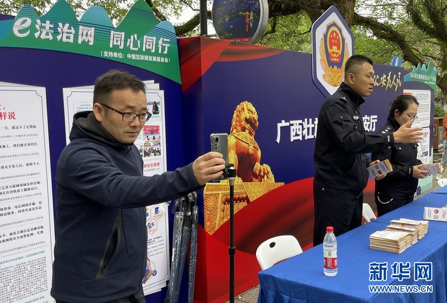 据了解,“网络法治宣传一条街”是2023年“全国网络普法行·广西站”的主要活动之一。活动现场以改编山歌传唱、直播讲解、现场竞答等形式进行网络法治宣传,为群众送上普法“大礼包”。