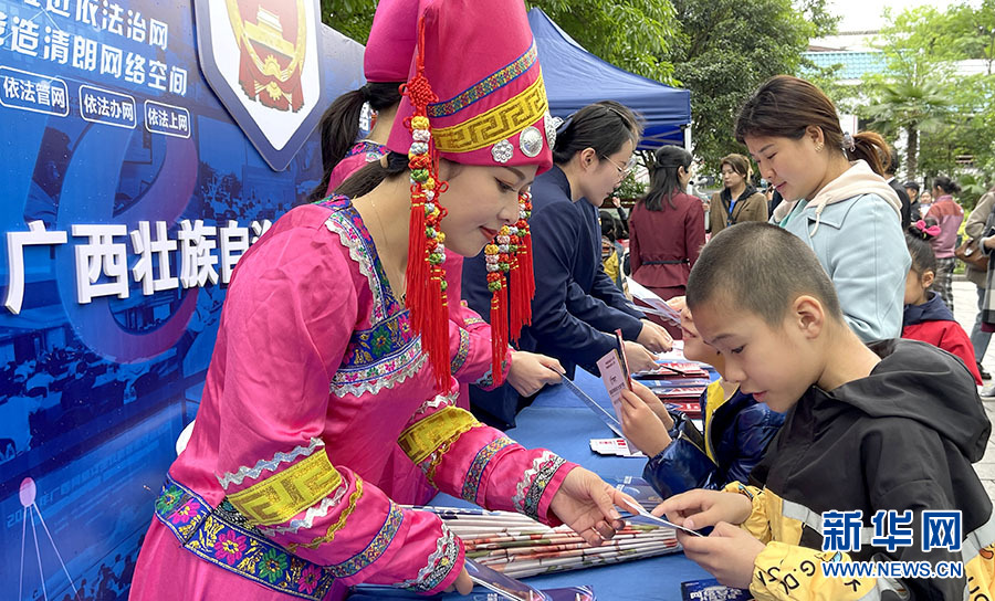 “网络法治宣传一条街”活动在广西桂林市古南门街道上开展。