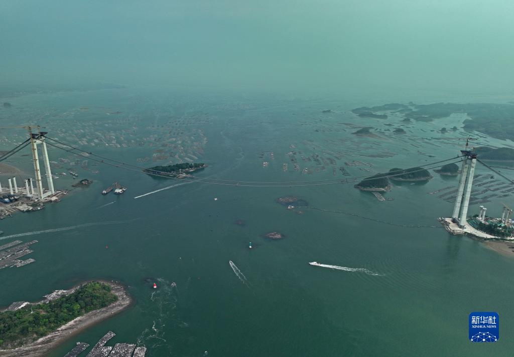 近日,位于钦州市的广西最长跨海大桥——龙门大桥项目建设全面进入上部结构施工阶段,其中龙门大桥主通航孔桥已完成主缆的架设,目前正在进行紧缆施工。