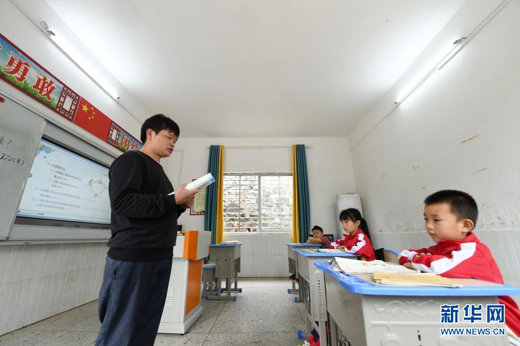 5月17日,在广西灵川县海洋乡中心岐教学点,蔡教宏在给学生上课。
