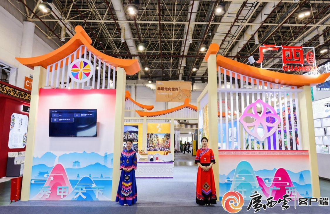 据介绍,广西展馆以“三江风雨桥”为造型灵感,吸取月牙形桥拱、飞扬檐翼、宝塔亭尖等元素,用现代化的设计语言进行二次创作,打造出简约现代与民族特色兼备的展馆造型。整座展馆由红色文化、民族文化、夜游经济、文博创意四个区域组成,通过文旅融合的形式,挖掘广西山水背后的文化内涵,深入浅出地讲述广西文旅故事。
