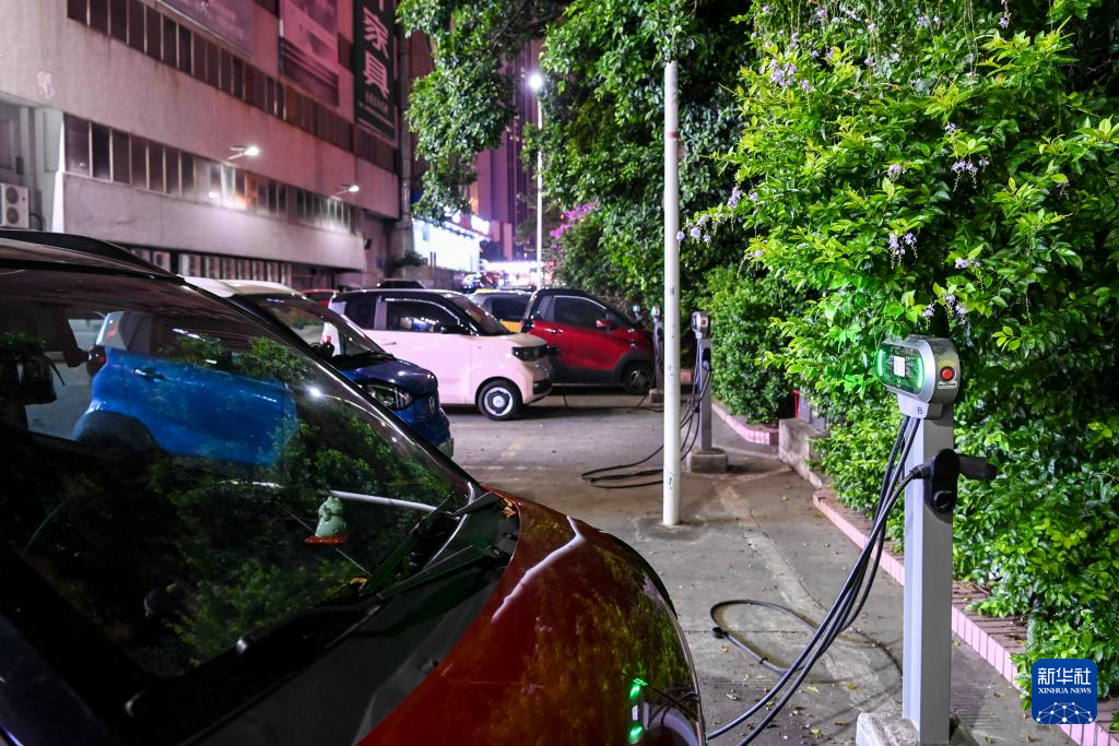 这是在广西柳州市街头拍摄的一处新能源汽车充电站(11月14日摄)。