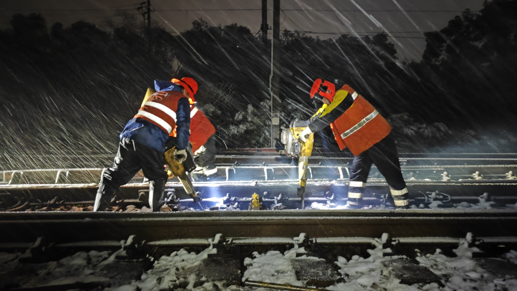 “南昌站84号道岔被冰雪覆盖……”22日清晨6时10分,在南昌电务段南昌信号工区,电台里接二连三传来设备告急消息。“拿工具,我们走!”工长吴匀和刚结束夜间作业的工区职工,来不及休息便带上冰铲、喷灯、防冻液等赶往现场。他们分成两组,用手中的扫把、除冰铲清扫道岔表面和钢轨缝隙中的冰雪,清理干净后再用长柄毛刷涂上一层防冻液。