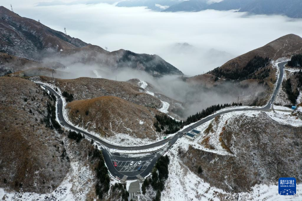 近日,广西全州县平均海拔1600米的天湖迎来2024年的第一场雪。