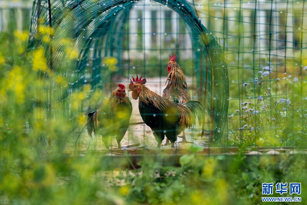 散养在共享菜园里的土鸡