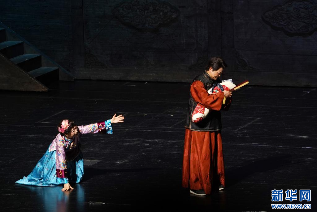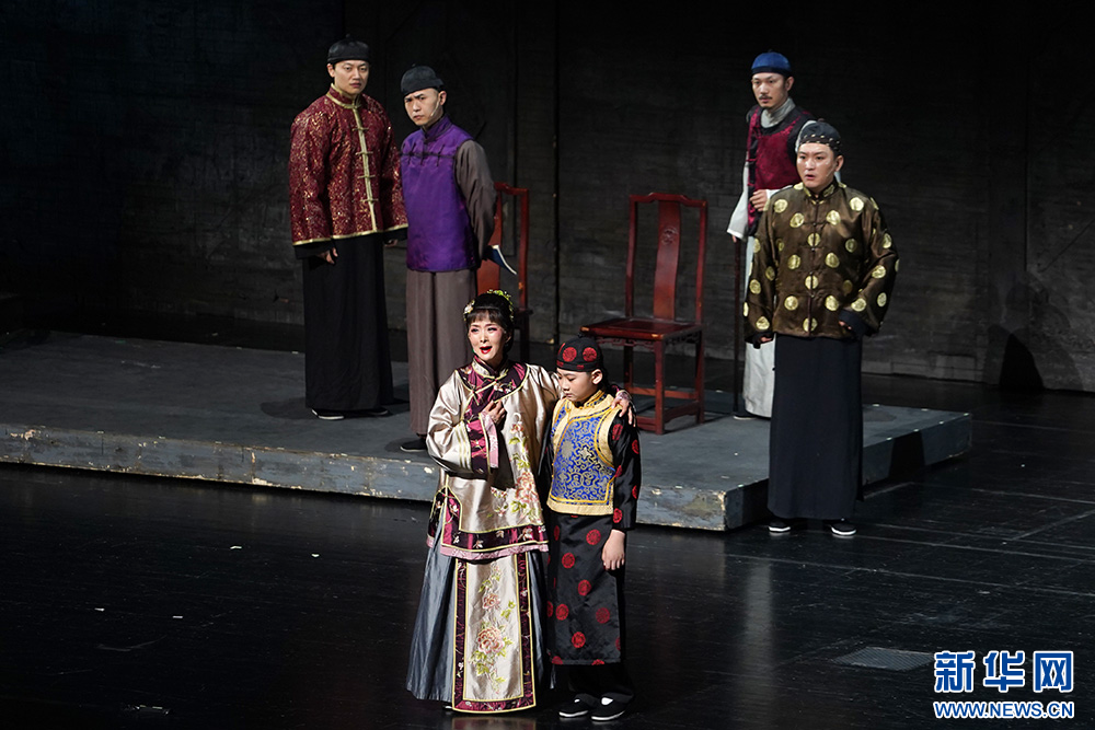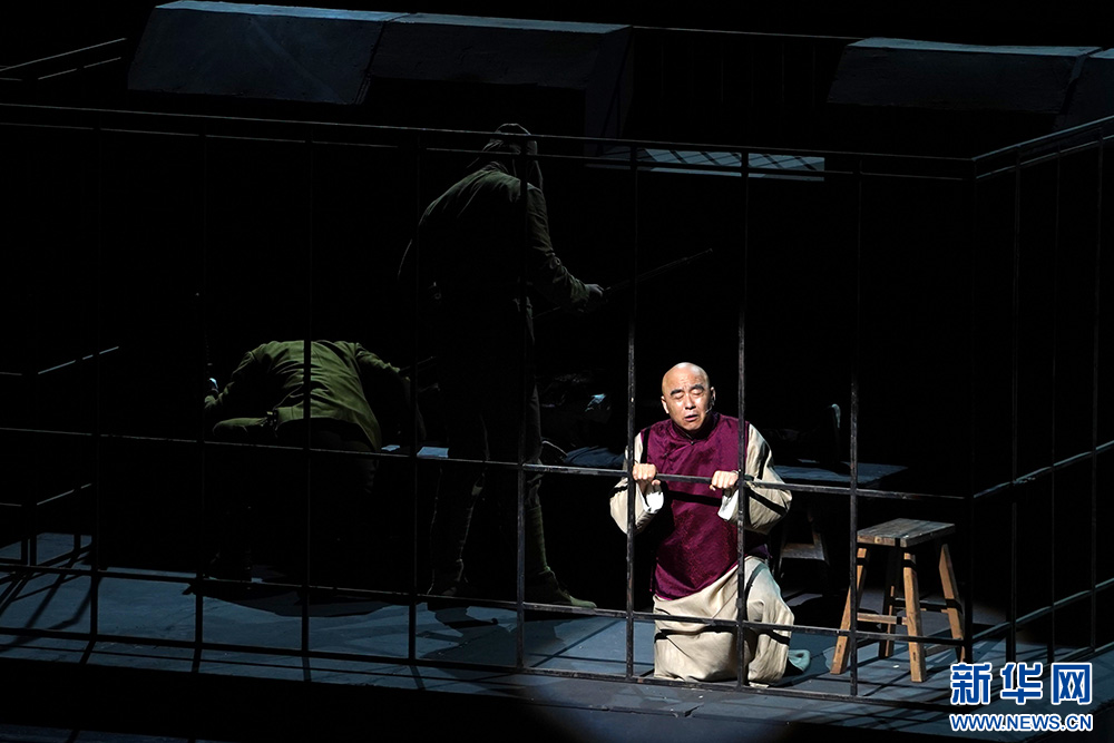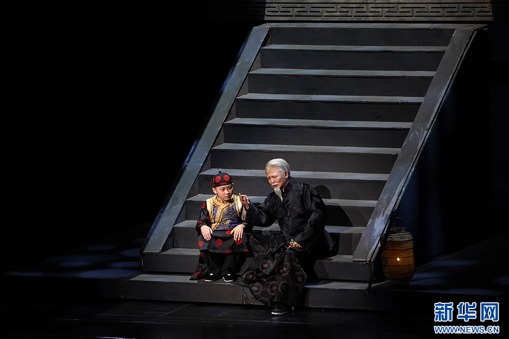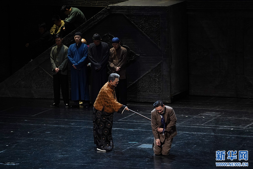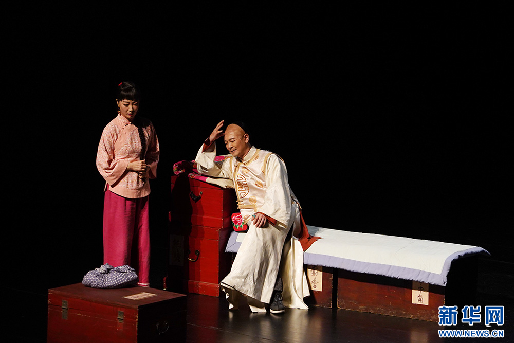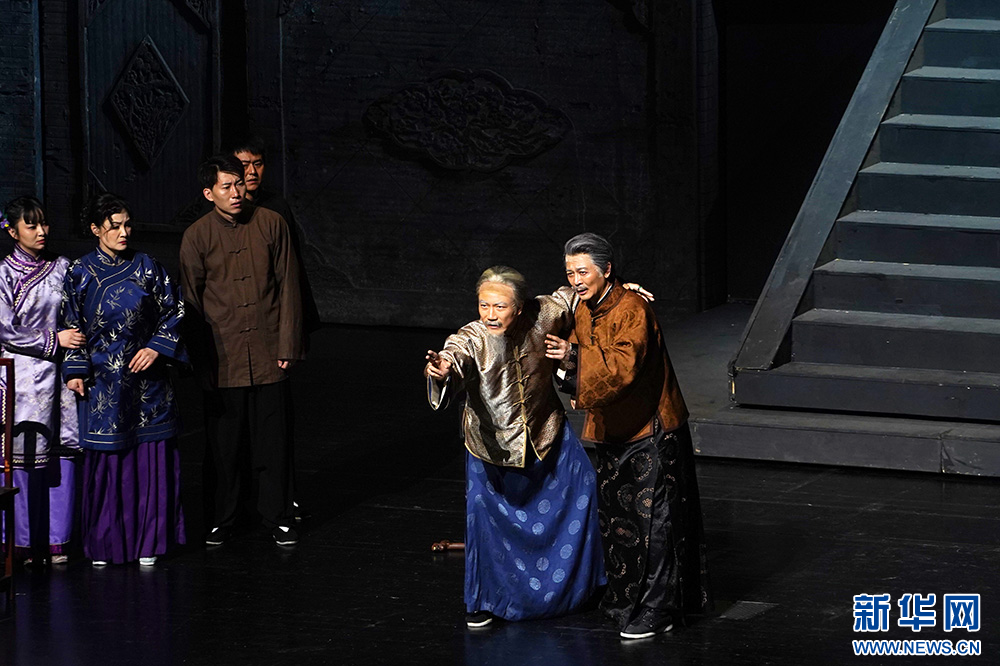 演员表演话剧经典《大宅门》。新华网 刘君 摄