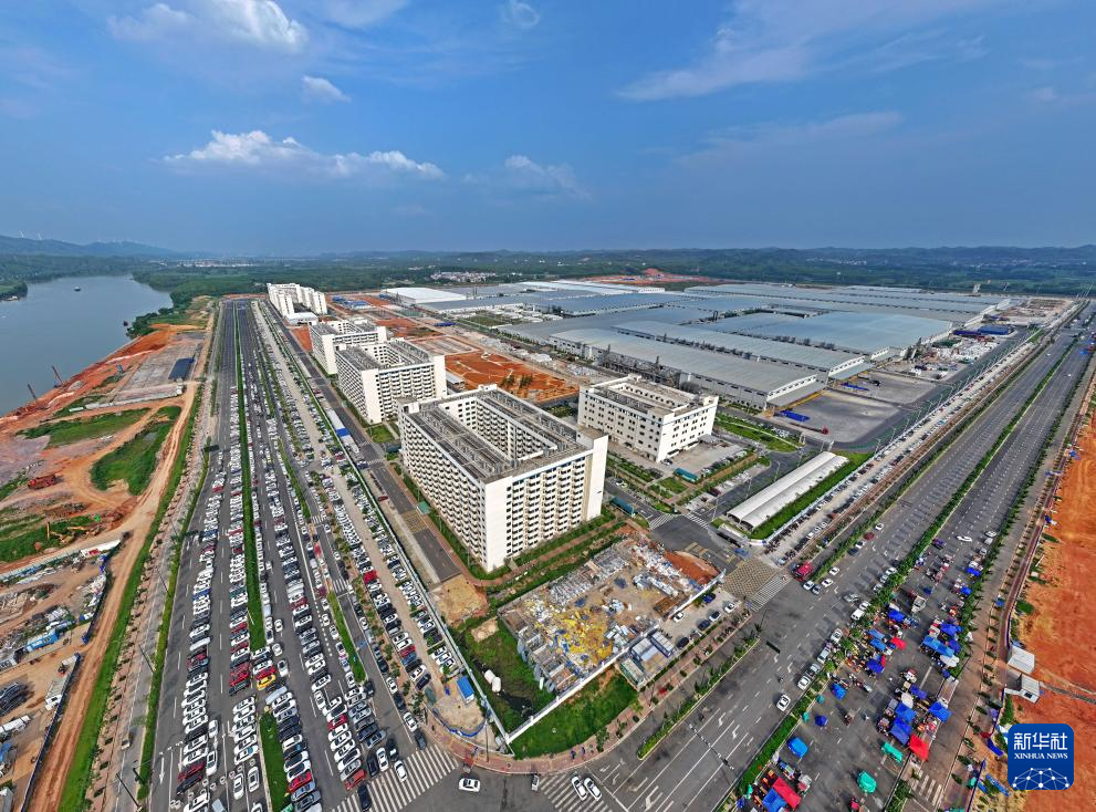 这是广西南宁市伶俐工业园区新能源汽车生产基地(无人机照片,5月14日摄)。
