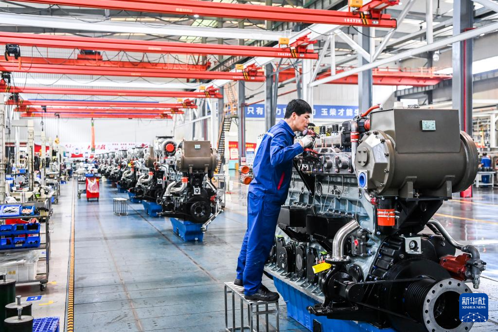 这是在广西玉林市玉柴机器集团有限公司拍摄的发动机生产线(5月15日摄)。