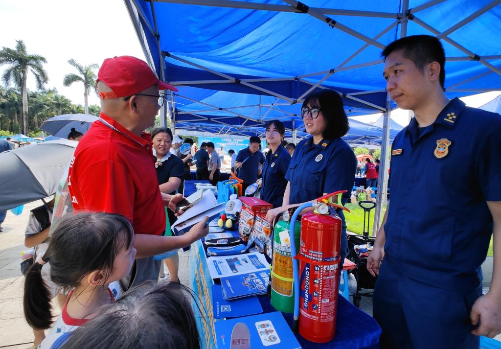 在广西消防救援总队展位,消防员在解答市民咨询。(新华社记者 杨驰 摄)