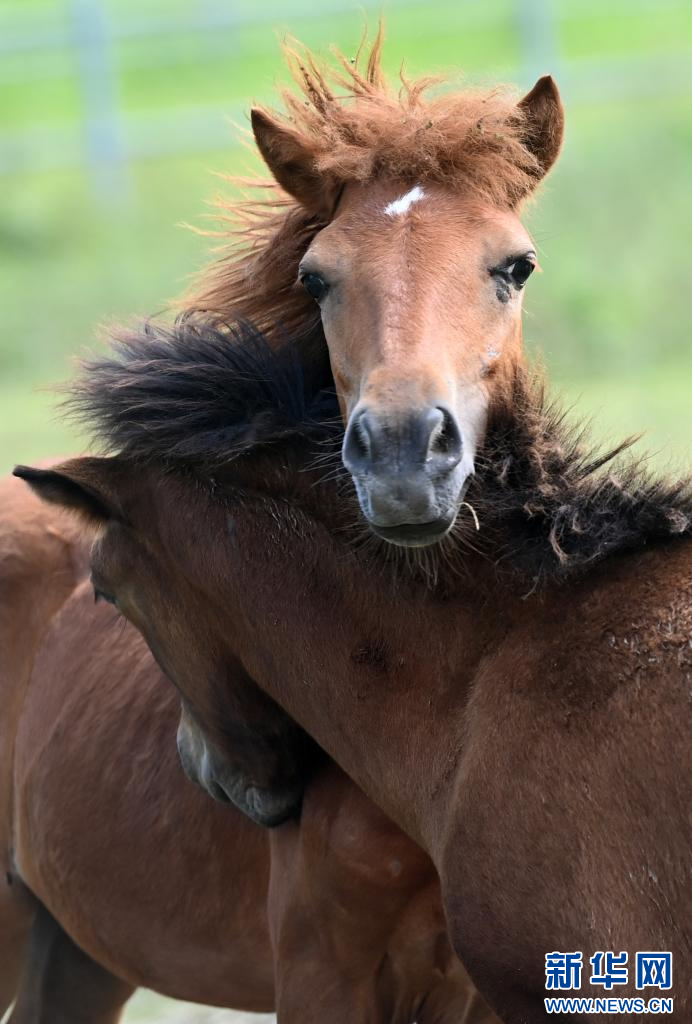 8月27日,在广西德保矮马王国,两匹德保矮马在一起。