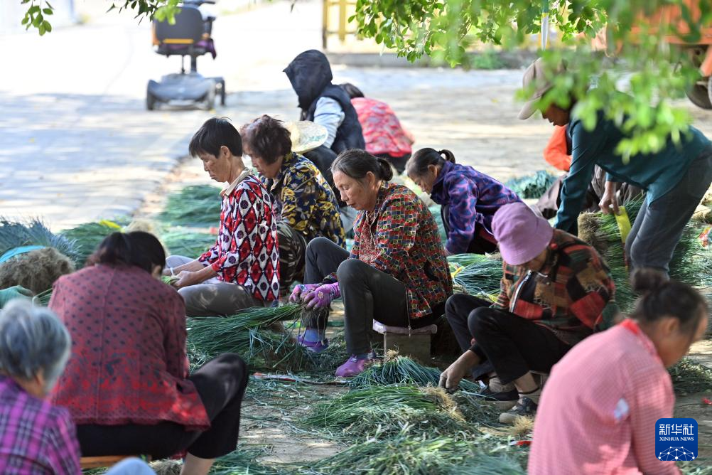 在柳州市柳江区三都镇觉山村,村民在挑选香葱(10月6日摄)。