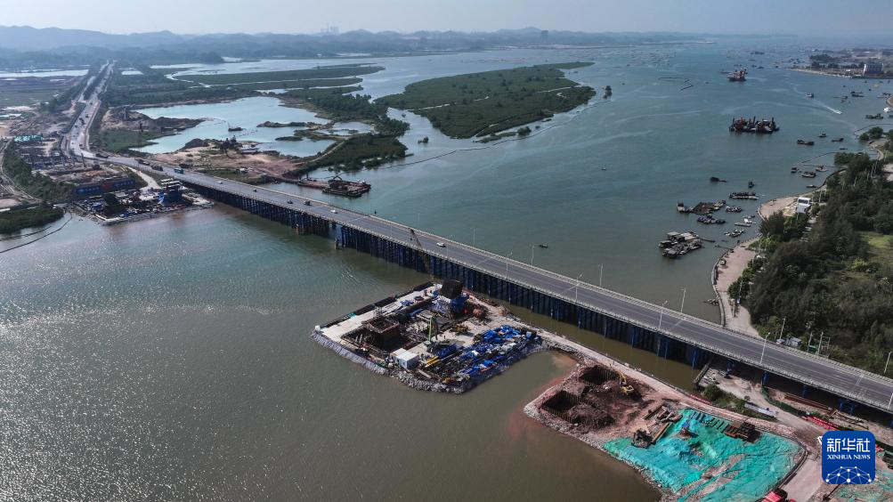 这是正在拆建中的钦州一桥(10月11日摄,无人机照片)。